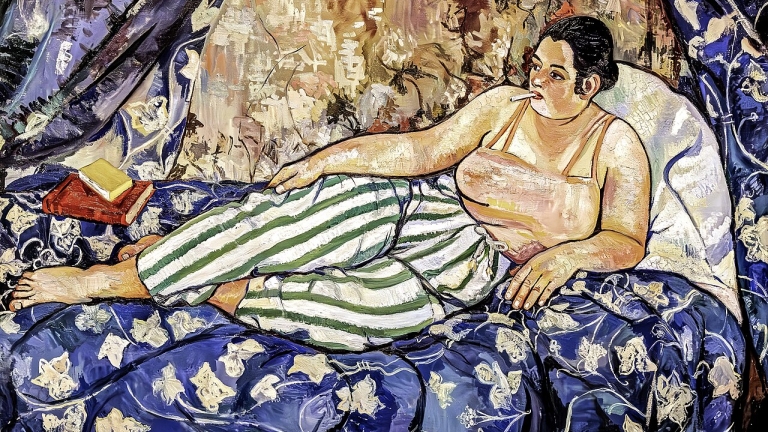 Aveva quasi sessant’anni quando realizzò uno dei suoi dipinti più famosi, «La camera azzurra»: un letto sfatto accoglie un’odalisca invecchiata, senza più alcuna traccia di giovanile seduzione, sigaretta in bocca, senza reggiseno, con pantaloni maschili (oggi li assimileremmo a un pigiama), qualche libro qua e là, capelli raccolti in una pratica coda di cavallo. A quasi sessant’anni Suzanne Valadon si concede l'ardire di desacralizzare la «Venere Dormiente» di Giorgione, la «Venere di Urbino» di Tiziano e persino la sfrontatissima «Olympia» di Manet, scandalosa nella sua cruda nudità ma pur sempre giovane e attraente. È nella maturità che Valadon si prende la sua sottile rivincita: lei, per decenni soltanto un corpo nelle mani dei pittori, ora può permettersi di ribaltare il mito femminile per eccellenza. | |